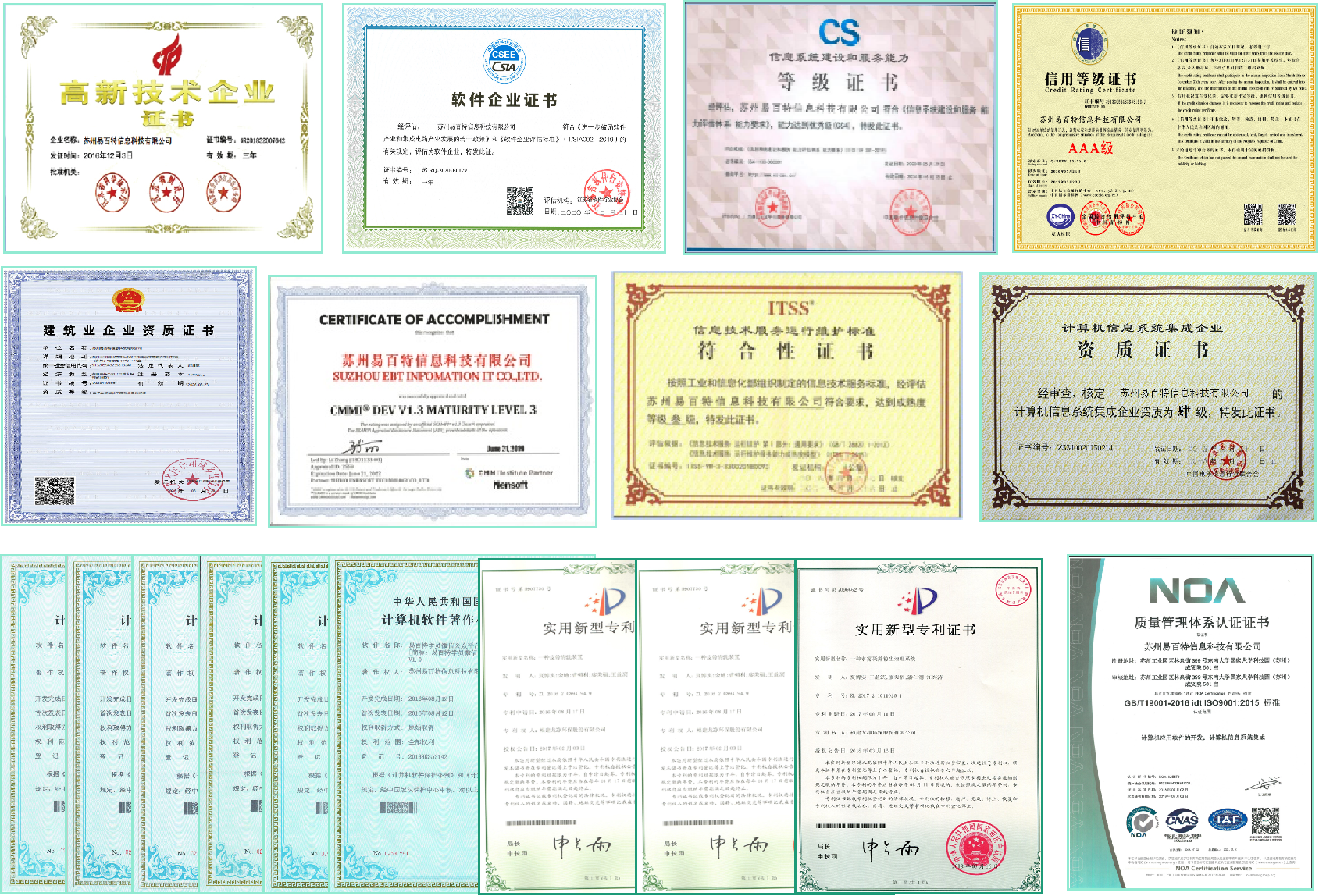 公司通过ISO9001、27001、系统集成资质、双软认证